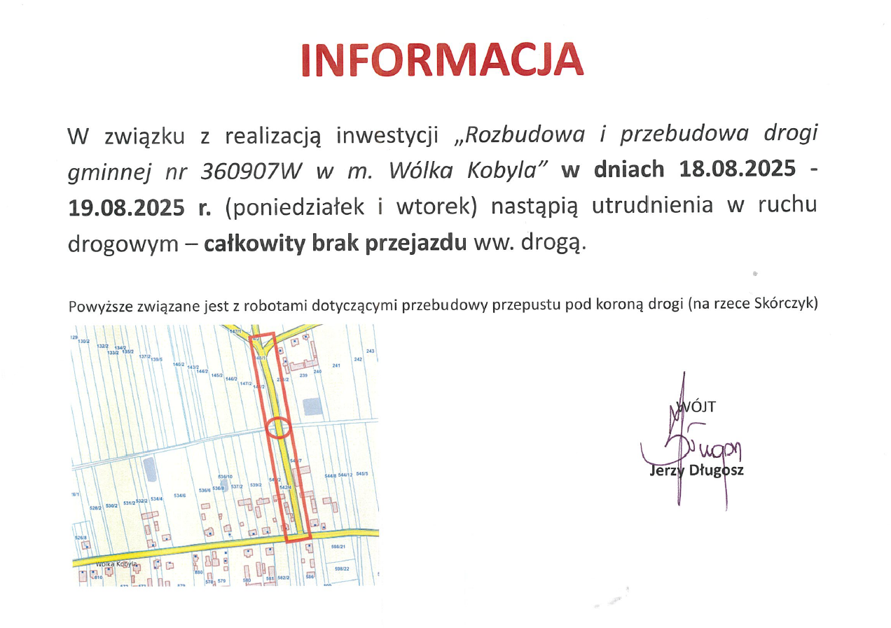 W załączniku pełna treść komunikatu.INFORMACJA O REMONCIE DROGI